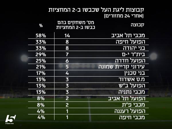 הידעתם כי הקבוצה של יעקב שחר כבשה רק במשחק אחד בשתי המחציות של ההתמודדות מתוך 24?! בוודאי לא תיפלו מהכיסא כשנבשר ש-5 קבוצות סה"כ לא כבשו בבית בשני חלקי המשחק. בקיצור, מפחדים לכבוש, לא אוהבים לחגוג והכל בשם הטקטיקה.