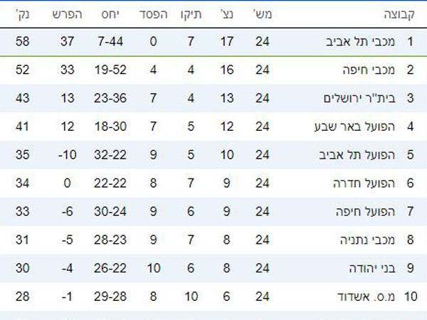 שני מחזורים בלבד נותרו לסיום העונה הסדירה, והמאבק על המקום בפלייאוף העליון בשיאו. ארבע קבוצות הבטיחו את המקום בשישייה הראשונה: מכבי ת"א, מכבי חיפה, בית"ר ירושלים והפועל באר שבע. ארבע ייאלצו לשחק בפלייאוף התחתון: קריית שמונה, רעננה, נס ציונה וכפ"ס. עוד ששיילחמו על שלושת המקומות הנוספים: הפועל חדרה, הפועל חיפה, הפועל ת"א, בני יהודה, מכבי נתניה ומ.ס. אשדוד. רגע לפני הישורת האחרונה, זמן טוב לעשות סדר, כשהבשורה הגדולה היא שהפועל ת"א תלויה בעצמה תודות ל-0:1 על בית"ר.