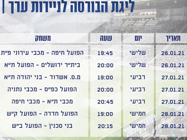 אחרי הסגר שגרר פגרה נוספת של הליגות המקצועניות, הכדורגל יחזור בקרוב לחיינו, והיום (חמישי) מנהלת הליגות פרסמה את מועדי המשחקים הבאים. יש לציין שגם אם הממשלה תחליט להאריך את הסגר, במנהלת כבר קיבל הבטחה שהכדורגל יחזור בכל מקרה.
