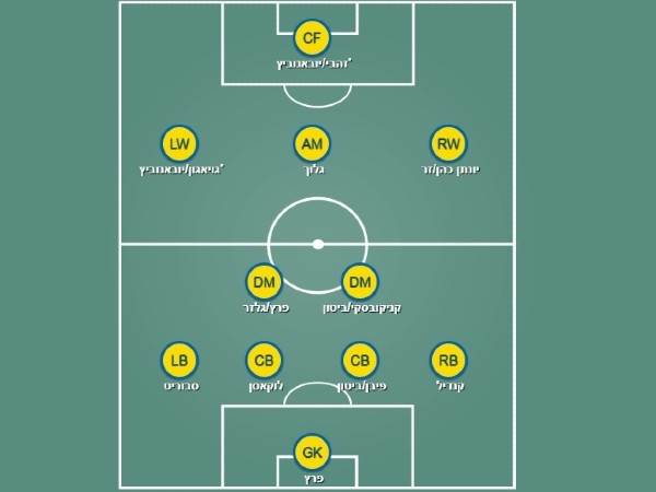 אז נתחיל בבסיס. בדומה למוריניו, מורו ורבו, גם קראנקה דוגל במערך 4-2-3-1, אבל מדובר במאמן שיודע לשנות ולגוון. בבירמינגהאם, למשל, הוא שיחק לעיתים בקו הגנה של חמישה ושני חלוצים איתו הייתה מזוהה מכבי ת"א עד כה ובמידלסברו, אותה העלה לפרמייר ליג ב-2016, השתמש לפרקים גם ב-4-4-2 קווים - אם כי קשה להאמין שישתמש במערך הזה גם במכבי ת"א בהתחשב בכך שיש לו את אוסקר גלוך בסגל. בהנחה שישחק במערך המועדף עליו זה ככל הנראה ידרוש ממנו לבצע רוטציה בין ערן זהבי וג'ורג'ה יובאנוביץ' או להסיט את האחרון לעמדת הכנף כמו שעשה מלאדן קרסטאיץ' - מה שלא ממש סביר שיקרה.