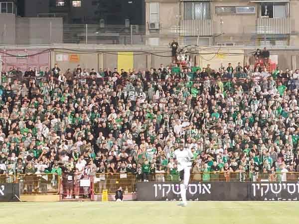 אוהדי מכבי חיפה מילאו את יציעי אצטדיון הי"א מפה לפה, וסיפקו מראות לא שגרתיים. אוהדים על החומות, ממלאים את המעברים וגם מחוץ לאצטדיון במרפסות - כל פינה ירוקה, אך איתה גם צפיפות מדאיגה בתוך היציעים. באצטדיון הי"א יש 6,500, כשרק מאות בודדות של אוהדים מקומיים הגיעו לאצטדיון, שביתר המקום נצבע בירוק.