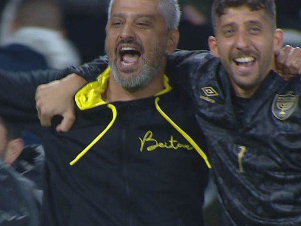 יצחקי מדרבן את כרמי לפני העלייה לדשא