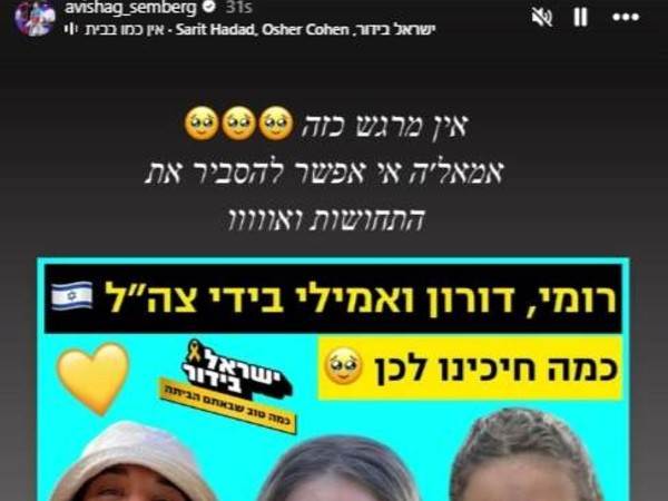 לאחר 471 ימים בשבי החמאס בעזה, הפעימה הראשונה של השלב הראשון בהסכם יצאה לדרך, ומדינה שלמה עצרה את נשימתה היום (ראשון), כאשר רומי גונן, אמילי דמארי ודרון שטיינברכר סוף סוף חזרו לישראל. גם עולם הספורט כמובן, לא נשאר אדיש לתמונות המרגשות. רומי, אמילי, דורון, מתרגשים לראות אתכן בבית.מחכים לכולם/ן 🙏🏻🇮🇱 pic.twitter.com/UFkP0b2tS1— Hapoel Tel Aviv FC (@HapoelTelAvivFC) January 19, 2025 רומי, דורון ואמילי - כמה טוב שבאתן הביתה🎗️עכשיו מחזירים את כולם. pic.twitter.com/HgH0jfrOKI— Beitar Jerusalem FC (@fcbeitar) January 19, 2025 מחכים לכולן/ם! 🎗️ #BringThemHome pic.twitter.com/hBMX0KQvys— Maccabi Tel Aviv BC 🇮🇱 (@MaccabiTLVBC) January 19, 2025