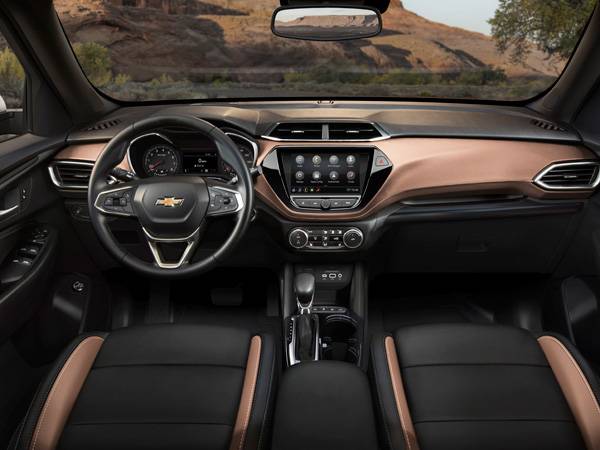 לטרייל בלייזר עיצוב פנימי המיישר קו עם האיכויות של אייקוניוקס וכן עם מערכות הפנים המעודכנות ביותר של ג'נרלס מוטורס, וכנהוג מתוצרת אמריקה כולל כמה וכמה תאי אחסון שימושיים בסביבת העבודה. למערכת המדיה הראשית וצג המגע ניתן יהיה לחבר 2 טלפונים סלולרים דרך ממשק בלוטות' בעת ובעונה אחת וכן תהיה לו בקרה אלחוטית תואמת אפל קאר פליי ו-אנדרויד אוטו מהדור האחרון. פרט לכך, הוא מצויד ב-2 רמות האבזור שלו (אקטיב ו-RS בארה"ב) בשלל מערכות בטיחות חכמות: התרעה על התנגשות חזיתית, בלימה אוטומטית, בלימה אוטומטית בזיהוי הולכי רגל, בקרת סטיה מנתיב עם תיקון היגוי, מצלמה אחורית וכן התרעה על שכחת ילד בספסל האחורי. השורה השניה תהיה מרווחת יותר משברולט טראקס במידה ניכרת, ומאחורי היושבים תא מטען שנפחו  עד 1,500 ליטרים בקיפול השורה השנייה.