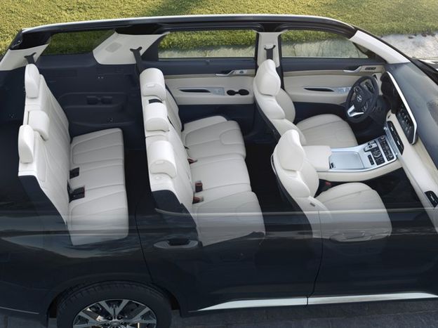 סידור ההושבה נחלק בין 7 ל-8 מושבים בהתאם לגרסה שתיבחר. בראשון, תצורת הפנים היא של 2 מושבים נפרדים במרכז הרכב (מושבי "קפטן") ומאחור ספסל עם שלושה מושבים רגילים. היתרון במושבי קפטן הוא היכולת לעבור בין השורות (מסדרון) לשורה השלישית ולרוב גם מדובר במושבים נוחים יותר. בסידור של שמונה מושבים מחליפים את מושבי הקפטן שלושה מושבים על ספסל קונבציונלי, נע על מסילות. ביונדאי גם מספרים על לא פחות מ-16 מחזיקי כוסות בחלל הפנים ועוד אי אילו תאי אחסנה שימושיים.