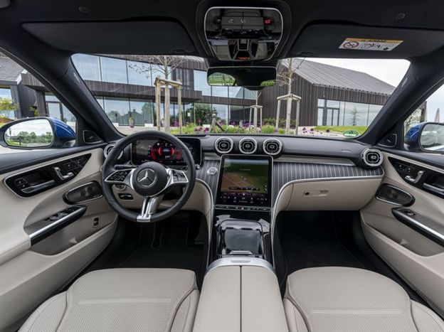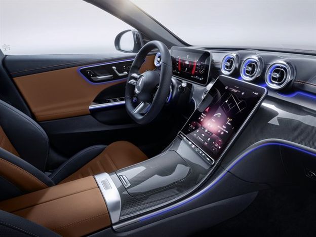 את מרב תשומת הלב מרכז חלל הפנים של ה-C קלאס, שכאמור אוסף כל מה שיש ל-S קלאס ומכווץ אותו בהתאם למרחבי הפנים שלה. בגרסת הכניסה, 'אוונגרד' המערכת הראשית מבוססת על צג 11.9 אינץ' ברזולוציות גבוהות ומקבל גיבוי עם לוח מחוונים דיגיטלי 10.25 אינץ' ומערכת שמע Front bass וממשקי אפל ואנדרויד. עוד ברשימת האבזור תאורת LED קדמית, חיישני חניה היקפיים,  תאורת אווירה 64 גוונים, חיישני תאורה וגשם, מושבי בד ARTICO ועוד. גרסאות בכירות מצוידות גם בצג דיגיטלי נוסף בגודל 12.3 אינץ', מצלמות היקפיות 360 מעלות, הנעה ללא מפתח, חימום מושבים, מערכת ניווט עם מציאות רבודה וטעינה אינדוקטיבית לסלולרי. הדגם היקר ביותר, ה-AMG ליין מובחן בעיקר בהיבט העיצובי בתמה ספורטיבית יותר בפנים ובחוץ. כל הדגמים חמושים בצי של מערכות הגנה אקטיביות מתקדמות.