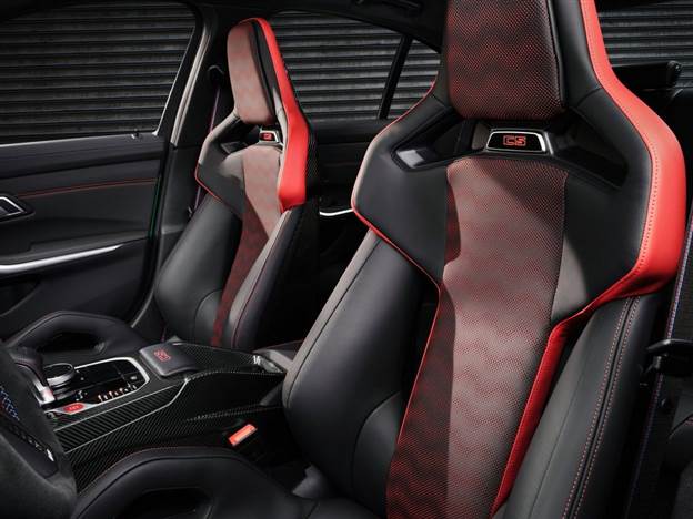 האווירה על סיפון ה-BMW M3 CS החדשה היא ייחודית. המושבים הקדמיים הספורטיביים כוללים מבנה באקט עשוי תרכובת פחמן, מעוטר בעור שחור ואדום, דפוס שחוזר על עצמו במושבים האחוריים. כל ארבעת המושבים כוללים צבעי BMW M בחגורות הבטיחות, בעוד לוח המחוונים מעוטר בסיבי פחמן חשופים.