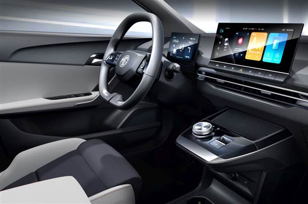 לא פחות מעניין הוא אזור העבודה של הנהג והנדסת האנוש להם מוטיב מינימליסטי. ה-MG 4 אלקטריק אינה חולקת קונסולה עם דגמים אחרים של המותג ואולי זה מה שנותן לה בידול קוסמטי רצוי בקבוצה שבה היא תנסה לאתגר את פולקסווגן ID.3 בין היתר. בפעם הראשונה, מותקנת תצוגה קומפקטית יחסית מאחורי גלגל ההגה, המתפקדת כלוח מחוונים דיגיטלי ובמרכזה התעלה הראשית, שם נמצאת מערכת אינפורמציה רחבה עם מוניטור מלבני ברזולוציה גבוהה, עם שורה של כפתורי לחיצה פיזיים מוצמדים לתחתית.