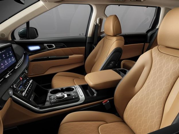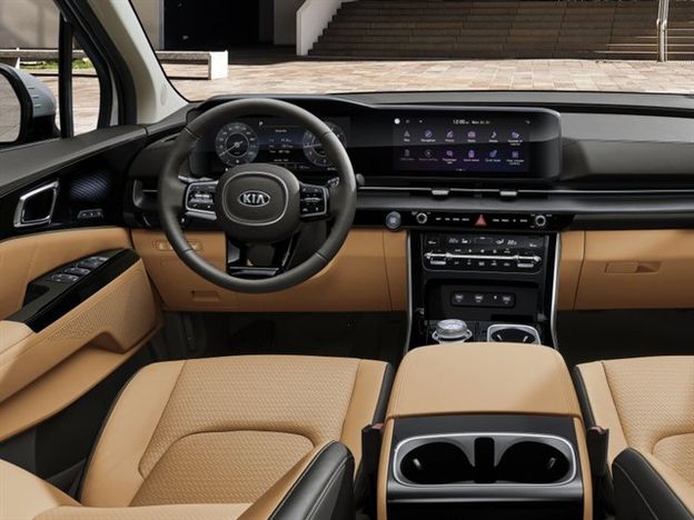 בפנים, הקרניבל המשווק בישראל מגיע כסטנדרט רק עם 7-מושבים. אלה מוגדרים מושבי יוקרה או "קפטן" עם אפשרות הזהה לפנים ולאחור. דלתות ההזזה והדלת האחורית נפתחות ונסגרות חשמלית, כולל באמצעות שליטה מרחוק על ידי שלט הרכב. לוח המחוונים של הקרנבל כולל פס כרום ברוחב מלא והנדסת אנוש תכליתית ואינה הרפתקנית. הקבינה מאורגנת היטב עם זוג מוניטורים בגודל 12.3 אינץ', אחד לנהג ואחד למערכת האינפורמציה מתחת לכיסוי זכוכית משותף. כמובן שמערכת המדיה מציעה קישוריות נרחבת כמו Apple Carplay, Android Auto, מספר כניסות USB לשילוב סמארטפונים.