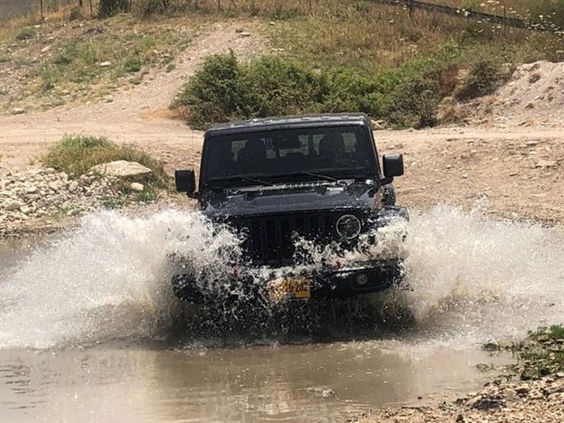 רציתי, לא עשיתי – להשכיב את השמשה הקדמית על מכסה המנוע... פעולה אפשרית בדגמי JL , לא מיידית, אך לא ממש מורכבת. זה היה יכול להיות מושלם, ביחוד בפנייה ימינה מהאספלט השחור. שם, הגלדיאטור מוכיח כי הוא ג'יפ אמיתי, לא רנגלר רגיל אמנם, אבל מתקרב. בסיס הגלגלים הארוך הוא עקב-אכילס של הגלדיאטור – הוא נוטה ל"התיישב" על גחונו (הממוגן) בקלות יחסית ודורש תכנון קפדני במעברי מדרגות סלע. נעילות הדיפרנציאל עושות פלאים, והצמיגים האגרסיביים, מאפשרים התקדמות בתוואי שטח מאוד בעייתיים , והופכים כל תוואי שטח לעביר, קל ונשלט. דוושת התאוצה מעט רגישה לטעמי, ומקפיצה את הג'יפ בזריזות, גם שמבקשים עדינות יתרה. מבנה הגלדיאטור עם ארגז, פותח אפשרויות רבות.