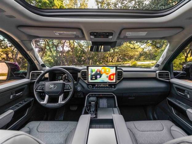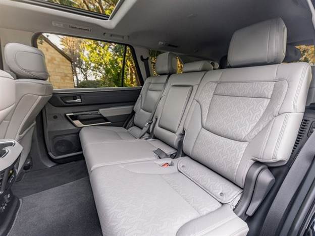 בפנים סקויה מציג שורה של חידושים; הציוד והלבוש של לפני 15 שנה הוסרו לטובת מראה עדכני ומתוחכם יותר ועם כוח מחשוב חזק פי 5 מהדור השני; בחזית פאנל קדמי דיגיטלי עם מסך כפול ללוח המחוונים ולמרכז המולטימדיה בגדלים של 12 או 14 אינץ' (תלוי בגרסה) ברזולציה משופרת. שולבו חומרים שונים לגימורים, יש יותר מרחב מחיה בסביבה ושלוש שורות מושבים לשבעה נוסעים על בסיס מושבי קפטן או שמונה נוסעים בספסל רגיל. חבילת הטכנולוגיה כוללת מערכת קישוריות חדישה וחבילת סיוע לנהג של Toyota Safety Sense 2.5, עם תכונות כגון בקרת שיוט דינמית מבוקרת מכ"ם ומערכת טרום התנגשות עם בלימה אוטומטית ומערכות הגנה חכמות נוספות. לרכב גם חישוקי 22 אינץ' ברשימה הארוכה, אפל ואנדרויד אלחוטיים ועוד.
