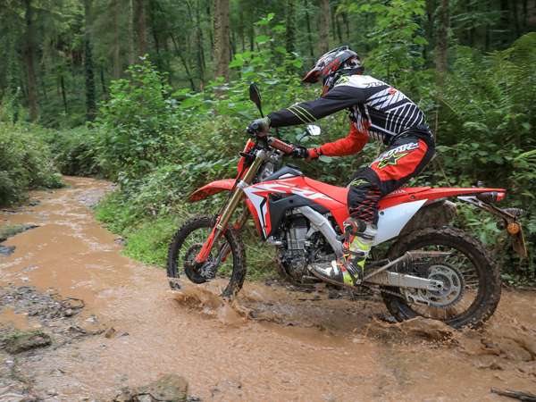עכשיו בואו נדבר על המנוע. הבסיס הוא כאמור מנוע המוטוקרוס של ה-CRF450R. השינויים שנעשו במנוע להתאמה לדו"ש / אנדורו עיבו משמעותית את רצועת המומנט הזמין, וכעת יש כוח כבר משחרור קלאץ' בסל"ד רצפה. תוסיפו לזה תגובת מנוע מהירה וחדה, ותקבלו מנוע אנדורו מצוין וקל לשליטה, שעשוי להיות חבר נאמן לרוכבי אנדורו מתחילים וביצועיסט לרוכבים מתקדמים יותר. שיא המומנט, שמתקבל כבר ב-3,500 סל"ד, מאפשר לרוכב לרכוב בשורט-שיפטינג, ומספק את כל הכוח שרוכב אנדורו צריך – כבר בסל"ד נמוך. מהבחינה הזו מהנדסי הונדה עשו עבודה מצוינת.