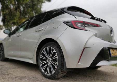 כך או כך, משדרת קורולה הצ'בק רוח צעירה – בדיוק האפקט שניסו לקושש בין המפלסים של CH-R והחיתוכים המוגזמים של ראב4 החדש. הפרופורציות שלה עובדות יפה מול כל המתחרים מהמזרח או מהמערב, אבל היינו רוצים לקבל אותה דווקא בגוון עמוק (אדום) ולא באפור-עכבר-ליסינג שגורם עוול לקימוריה הנאים. לפחות חישוקים בגודל 17 אינץ' מצליחים לחזק את הנוכחות על הכבישים ויוצרים ניגוד נאה בין הקו התחתון לתקרה המושחרת.
