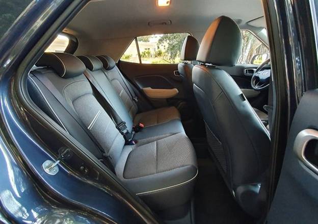 אם נעבור לשורת המושבים השנייה, נגלה מושבים נוחים כמו במושבים הקדמיים וגם אלה יהיו מרופדים ועשויים באותם חומרים. מידותיו הצנועות של הוניו לא יקלטו בנוחות מופלגת 3 מבוגרים, ממש לא. שני נוסעים מבוגרים יוכלו להסתדר למרות דוחק קל של הברכיים שנמצאות ממש קרוב למושבי הקדמי. אם אתם תהיו אלה שיסעו בה מאחור, קחו בחשבון שאין לה שקעי טעינה וגם לא פתחי מיזוג אחוריים, אז מומלץ להתחיל את הנסיעה עם טלפון טעון לגמרי ולקוות שתצטרפו כאשר המזגן כבר עבד כמה דקות והחלל של המכונית הספיק להצטנן מעט. בדלתות האחוריות תגלו תאי אחסון קטנים לבקבוק שתייה בגודל בינוני ומעל לראש לא נמצא שום גג פנורמי או גג שמש שיכניס את אור היום בזווית עליונה כי חלונות הצד האחוריים מושחרים ומסננים היטב את הקרינה.