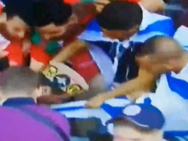 עשרות אלפי ישראלים פוקדים את היציעים במוסקבה כדי לצפות מקרוב במשחקי הגביע העולמי. כמה מהם הגיעו למשחק בין פורטוגל למרוקו (0:1 לפורטוגלים) עם דגל גדול, שנפרס ביציע. בסיום המשחק צולמו כמה אוהדים מרוקאים מתקרבים אל הדגל ומנסים למשוך ואולי אפילו לקרוע אותו. האוהדים הישראלים הגיבו במהרה ואספו בחזרה את הדגל.