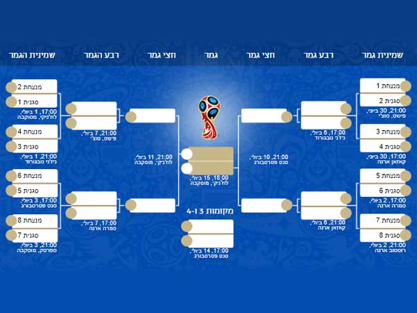 צד שני: אורוגוואי-ספרד, צרפת-ארגנטינה, ברזיל-גרמניה, בלגיה-קולומביה.