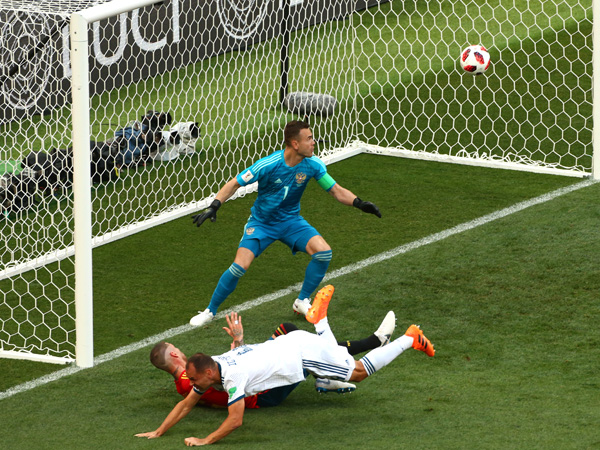 * רוסיה הראשונה שסופגת שני שערים עצמיים במונדיאל לראשונה מאז בולגריה ב-1966.