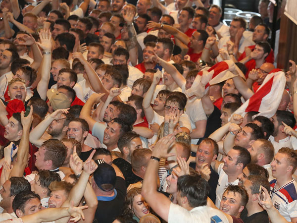 מי היה מאמין? אנגליה חזרה לחצי גמר המונדיאל בפעם הראשונה מזה 28 שנים ורחוקה שני ניצחונות מזכייה שנייה בהיסטוריה, וסנסציונית הרבה יותר. האוהדים בממלכה, כמו גם ברוסיה כמובן, לא ידעו נפשם מרוב אושר וסרטוני החגיגות שטפו את הרשת, בדומה לבירה ששטפה את מתחמי האוהדים. והיו גם כאלה שהצליחו לשמור על הכוסות שלהם. בעוד 8 ימים, הלוזרים הנצחיים עוד עשויים להיות אלופי העולם. When Dele Alli finds the back of the net ... pic.twitter.com/BJqFEONgO8— ESPN (@espn) July 7, 2018 Boxpark in Croydon celebrate Dele Alli’s goal. Unreal scenes. 🔥 #ENG #WorldCup pic.twitter.com/KYvvzXU2Q3— 360Sources (@360Sources) July 7, 2018 #Eng fans celebrate Dele Alli making it 2-0 against #Swe in the #WorldCup quarter-finals pic.twitter.com/YbwWTH34uN— Guardian sport (@guardian_sport) July 7, 2018 GOAL!! Dele Alli doubles #ENG lead against #SWE. Its coming home. #dreambigwithlidl #ad pic.twitter.com/80QeTL2MUy— Troll Football (@TrollFootball) July 7, 2018 We got Alli... pic.twitter.com/cfVa95oRIM— Adam Brooks (@EssexPR) July 7, 2018 England fans went crazy after that Maguire goal...including @Kelly_Smith10 and @IanWright0 😂 pic.twitter.com/x3RH69kQsd— FOX Soccer (@FOXSoccer) July 7, 2018 ENGLAND SCORED!!!!! Everyone going wild on Brighton beach #bbcengland #ENGSWE #worldcup pic.twitter.com/GxwMmA70s1— BBC South East (@bbcsoutheast) July 7, 2018 Birmingham is a happy place! @bbcmtd @BBCSport #ENGSWE #bbcengland pic.twitter.com/0Q8E4dS6wJ— Ben Sidwell (@ben_sidwell) July 7, 2018 A goal from Alli and it was beer showers all round in the Dereham grandstand at the Railway Tavern. 🍻#WorldCupRussia #bbcengland pic.twitter.com/pVyuKBnLYQ— Martin Barber (@martinb_uk) July 7, 2018 The moment England made it 2-0 from the fan park in Russia! 🏴#ENGSWE | #TSWorldCup pic.twitter.com/eLCTTnLBL2— talkSPORT (@talkSPORT) July 7, 2018 Fans in Sunderland celebrate Dele Alli heading home England's second goalhttps://t.co/3trcV8WflP #ENG #WorldCup pic.twitter.com/B2vg15FXOw— ITV News (@itvnews) July 7, 2018