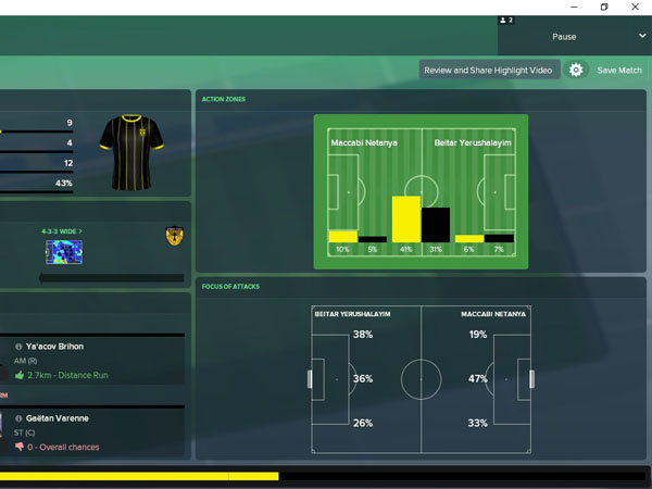 גם המחצית השנייה החלה כך אבל בדקה ה-64 טעות של בוריס קליימן, אחת מיני רבות בשבועות האחרונים, החלה התקפה שבסיומה ערן לוי מצא את קוגבנייה והאחרון נגח לרשת. במשחקים האחרונים של בית"ר איתי שכטר פינה את מקומו לוראן בכל הנוגע לכיבוש השערים. בסימולציה הפעם הוא גם סחט פנדל מדודי טירם וגם תירגם אותו לשער השיוויון עשר דקות מהסיום.