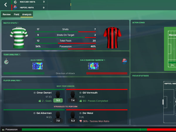 משחק הפוטבול מנג'ר, למי שלא מכיר, זהו משחק אשר מדמה אימון קבוצת כדורגל בצורה המדויקת ביותר האפשרית. אם זה בעניינים כספיים, טקטיים ואפילו מהמשחק האחרון גם חברתיים. הערב (שלישי) ייצא לדרך המפגש בין מכבי חיפה להפועל חיפה. לקראת המשחק בין שתי הקבוצות (21:00, שידור ישיר ב-5SPORT), החלטנו לתת למשחק "פוטבול מנג'ר" להראות את יכולותיו ולבדוק בעזרתו את הכלים הטקטיים שיש לשתי הקבוצות ואף לנסות ולחזות את תוצאות המשחק.