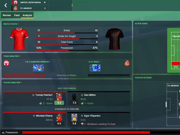 משחק הפוטבול מנג'ר, למי שלא מכיר, זהו משחק אשר מדמה אימון קבוצת כדורגל בצורה המדויקת ביותר האפשרית. אם זה בעניינים כספיים, טקטיים ואפילו מהמשחק האחרון גם חברתיים. הערב (שלישי) ייצא לדרך המפגש בין הפועל באר שבע למ.ס. אשדוד. לקראת המשחק בין שתי הקבוצות (21:00, שידור ישיר ב-5SPORT), החלטנו לתת למשחק "פוטבול מנג'ר" להראות את יכולותיו ולבדוק בעזרתו את הכלים הטקטיים שיש לשתי הקבוצות ואף לנסות ולחזות את תוצאות המשחק.