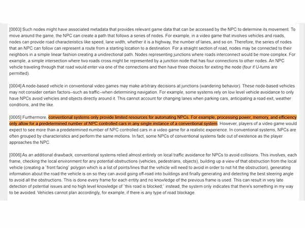הפטנט החדש למעשה הופך את מערכת האינטילגנציה המלאכותית של כל ה-non-player characters (דמויות שלא ניתן לשחק איתן - NPC) במשחק ל"חכמות" יותר, כך שיתנהגו בצורה יותר טבעית ואנושית. במסמך נרשם כי "המערכות הקיימות מציעות משאבים מוגבלים" למפתחים שלמעשה מעוניינים לאכלס את משחק העולם הפתוח באלמנטים שונים "חיים" (דמויות או רכבים, לדוגמא).