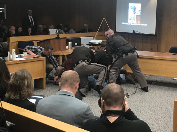 רנדל מרגרייבס, אשר שתיים משלוש בנותיו הסכימו להיחשף בפרשיה, הגיע לשימוע, עלה לדוכן וביקש מהשופטת "חמש דקות בחדר סגור על מנת לסגור חשבון עם השד הזה". לאחר שסירבה, האב שאל: "האם תיתני לי לפחות דקה אחת?", אבל כמובן שסירבה שוב ובתגובה הוא דהר לעברו של נסאר והחל להכות אותו תוך שהוא מטיח לעברו קללות.