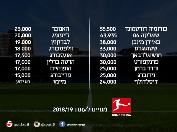 טירוף האוהדים בגרמניה לא הפך נחלתם של מועדוני הפאר בלבד, וגם הקבוצות "הקטנות" שבבונדסליגה הצליחו להשוות ואפילו להגדיל את כמות המנויים שנרשמו בעונה החולפת. דוגמה מרשימה לתופעה היא דיסלדורף, העולה החדשה לליגה הבכירה, שמכרה לא פחות מ-24 אלף מנויים, כמות כפולה מאשר בעונת 2017/18.