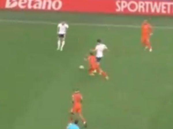 בשלב הזה האנגלים הבינו שעדיף להם לשמור את סימונס, אבל הוא כבר היה חצי צעד לפניהם ובעט מקצה הרחבה. הכדור היה שער בדרגת קושי גבוהה, עם 0.03xG.