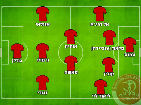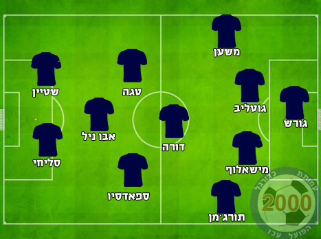 הרכב משוער: דני עמוס; מוחמד אבו אל היג'א, יורגן קולין, סארי פלאח (עוביידה חטאב), ליאור לוי; סאשה לוקאס, משה אוחיון, ישראל זגורי, גילי ורמוט, שלומי אזולאי; שובל גוזלן.
