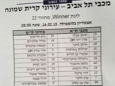 קרית שמונה: גיא חיימוב; עודד אלקיים, קאסיו פרננדס, שיר צדק, טובראנו פינאס; וובה בראון, אדריאן רוצ'ט, רועי קהת; אחמד עאבד, דויד מנגה, שמעון אבוחצירה.