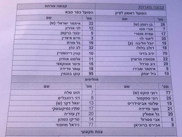 הרכבים נס ציונה: עמית שמש, אופיר חמו, נאור סבג, צליל נחמיה, אמנון טדלה, איתי עוזרי, בן סיטלקול, רז שטיין, בן שמעוני, אחמד שעבאן, גיל שרון.