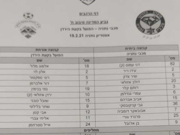 הרכבי מכבי נתניה והפועל בקעת הירדן (ליגה א')