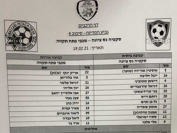 הרכבי מכבי פתח תקווה וסקציה נס ציונה (14:00)