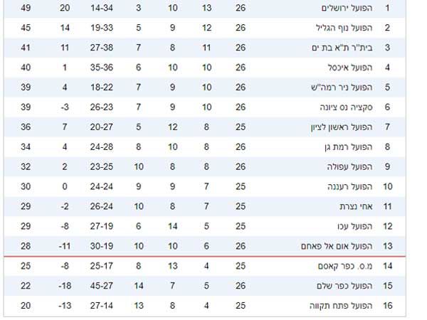 הפועל איכסל - הפועל אום אל פאחם 3:2איזה משחק מטורף. אום אל פאחם היתה הראשונה לעלות על הלוח משער של לבאן קוטאליה (45), מוחמד כליבאת (50) וחוליו סזאר (68) השלימו מהפך, אך שני שערים נוספים של קוטאליה (70 ו-87) השלימו עוד מהפך ושלושער ענק של החלוץ הגיאורגי. סמיר עיסא מתרחקת מהתחתית, איכסל פספסה הזדמנות להתקרב לצמרת.