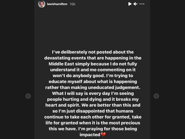 גם לואיס המילטון העלה הודעה בסטורי שלו, שם הוא כתב: "בכוונה לא כתבתי בעבר על האירועים המזעזעים כי אני פשוט לא מבין אותם לגמרי. תגובה שלי על זה לא תעזור לאף אחד. אני מנסה ללמד את עצמי מאשר להעביר ביקורת סתם. אני כן אגיד שבכל יום אני רואה אנשים נפגעים ומתים, זה פוגע לי בלב ובנפש. אנחנו יותר טובים מזה".
