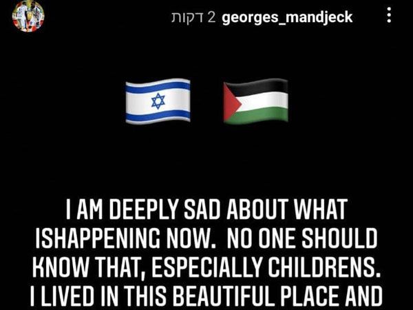 אקס מכבי חיפה, ג'ורג' מנדז'ק, קורא להפסקת אש בסטורי שלו באינסטגרם: "אני עצוב מאוד בגלל מה שקורה כעת. אף אחד לא צריך לחוות זאת, במיוחד ילדים. חייתי במקום היפה הזה. כל מה שאני מאחל הוא שהקהילות יוכלו לחיות בהרמוניה".