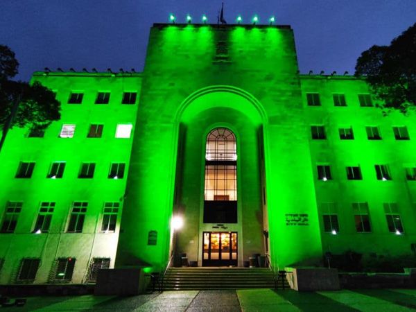 בעיריית חיפה האירו את ההיכל בצבע ירוק, כהצדעה לאלופה שהחזירה את הצלחת לכרמל אחרי עשור. (צילום: ראובן כהן, דוברות עיריית חיפה)