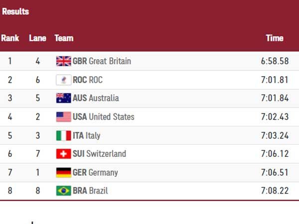 במקצה ה-4X200 חופשי רביעיית השליחים הבריטית כמעט קבעה שיא עולם מדהים, אך הסתפקה במדליית זהב לאחר, 6:58.58, 3 מאיות בלבד מהשיא הענק. במקום השני רוסיה ובמקום השלישי אוסטרליה. נבחרת ארה"ב סיימה במקום הרביעי ונותרה ללא מדליה.