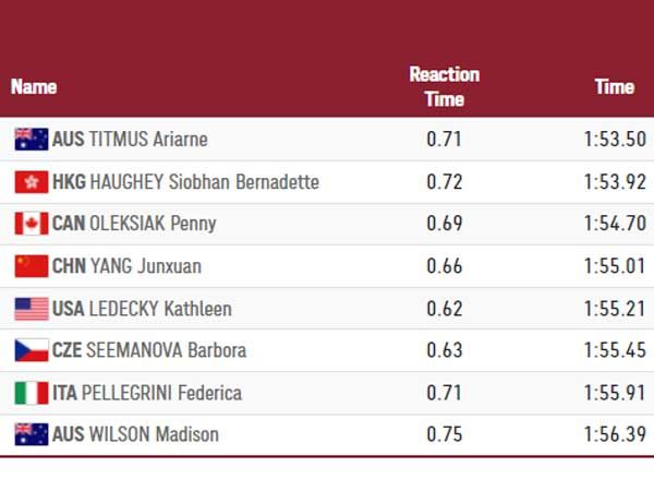 ברנדטה הואיי מהונג קונג הובילה ברוב שלבי המקצה, אך אריארן טיטמוס צמצמה כל הדרך לזהב ולקביעת שיא אולימפי חדש במקצה - 1:53.50!