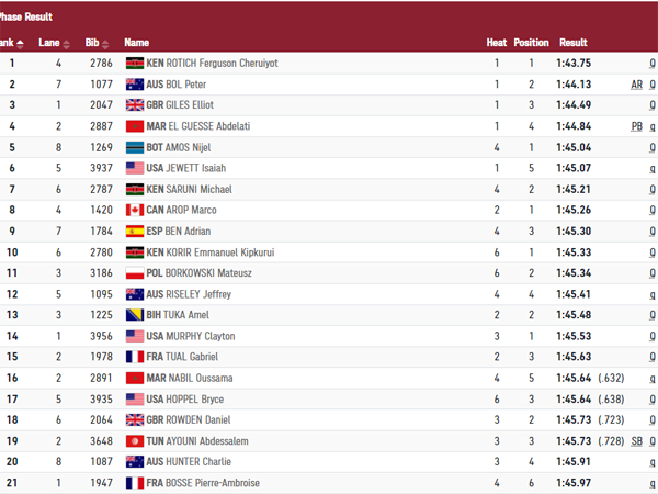 האצן שרשם את התוצאה הטובה ביותר במוק' 800 מטר הוא פרגוסון צ'ריוט רוטיץ' (1:43.75). צפו במקצה שלו>>>