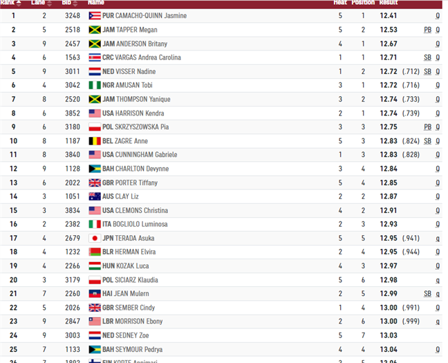 העולות לחצי הגמר ב-100 מ' משוכות (גם סיימור בה) מאיי הבהאמה תפסה את מקומה.