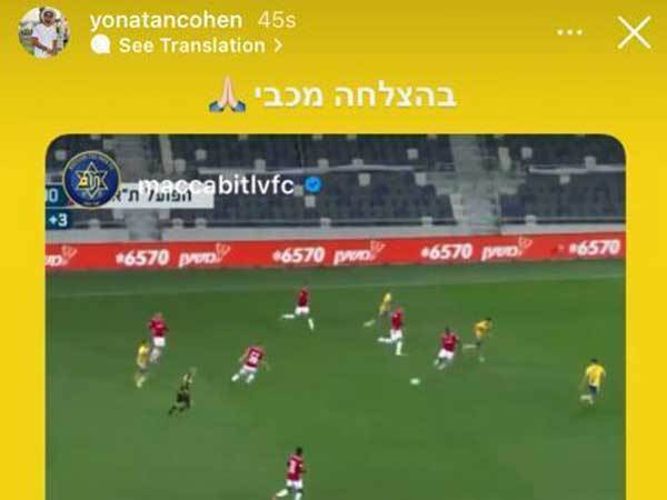 אקס מכבי תל אביב ומי שכבש במשחק האחרון בין הקבוצות, יונתן כהן, איחל בהצלחה לקבוצתו לשעבר באינסטגרם
