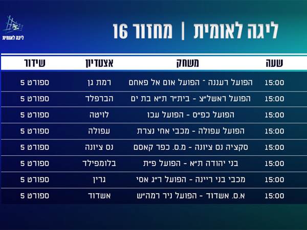 עדכונים חיים: משחקי המחזור ה-16 בליגה הלאומית