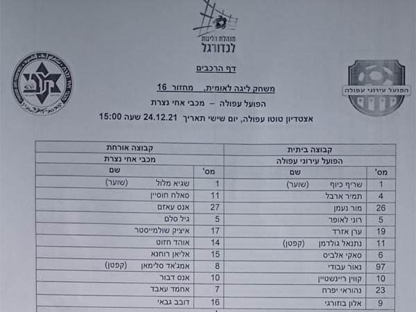 הפועל עפולה - מכבי אחי נצרת 1:2