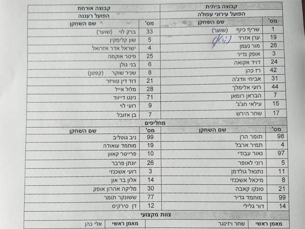 הפועל רעננה נסעה לצפון כדי לפגוש את הפועל עפולה. הנה הרכבי שתי הקבוצות: