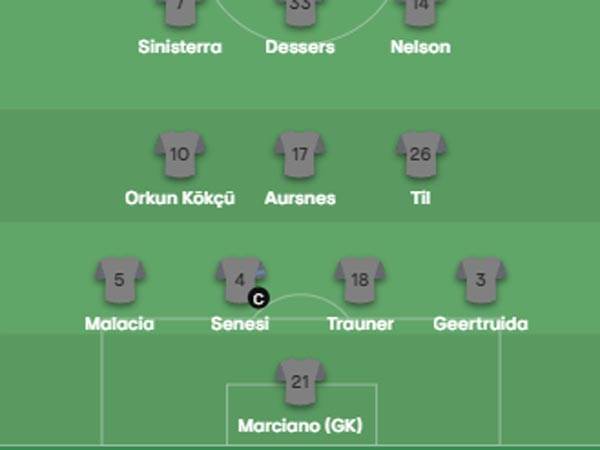 ההרכבים מתחילים להתפרסם! הנה ה-11 של פיינורד למארסיי: מרציאנו יעמוד בין הקורות של ההולנדים