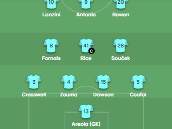 הרכבה של פרנקפורט למשחקה נגד ווסטהאם