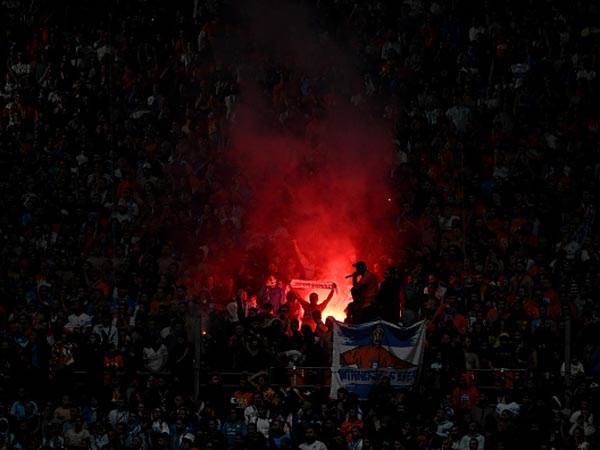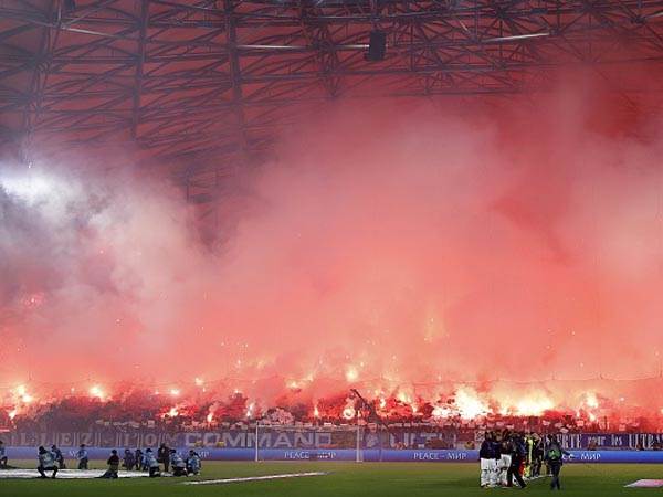 ראות לקויה בולודרום בתחילת המשחק, אחרי תצוגת אבוקות של אוהדי מארסיי ביציעים (GETTY)