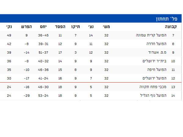 כך נראית טבלת הפלייאוף התחתון, רגע לפני מחזור הסיום של העונה